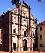 This is the only church in Old Goa, which is not plastered on the outside, the lime plaster having been stripped off by a zealous Portuguese conservationist in 1950.