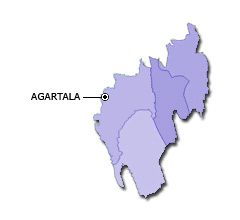 Tripura is a state in North-East India which borders Bangladesh, Mizoram and Assam. It is surrounded by Bangladesh on its north, south and west: the length of its international border is 856 km (84 per cent of its total border). It shares a 53 km long border with Assam and a 109 km long border with Mizoram. The state is connected with the rest of India by only one road (NH-44) that runs through the hills to the border of Karimganj District in Assam and then winds through the states of Meghalaya, Assam and North Bengal to Calcutta.